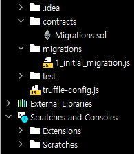 ์ง๋ ํฌ์คํ ์์์ฒ๋ผ, truffle ํ๋ก์ ํธ๋ฅผ ์์ฑํ๋ฉด ๋ค์์ ๊ตฌ์กฐ๋ฅผ ๊ฐ์ต๋๋ค.