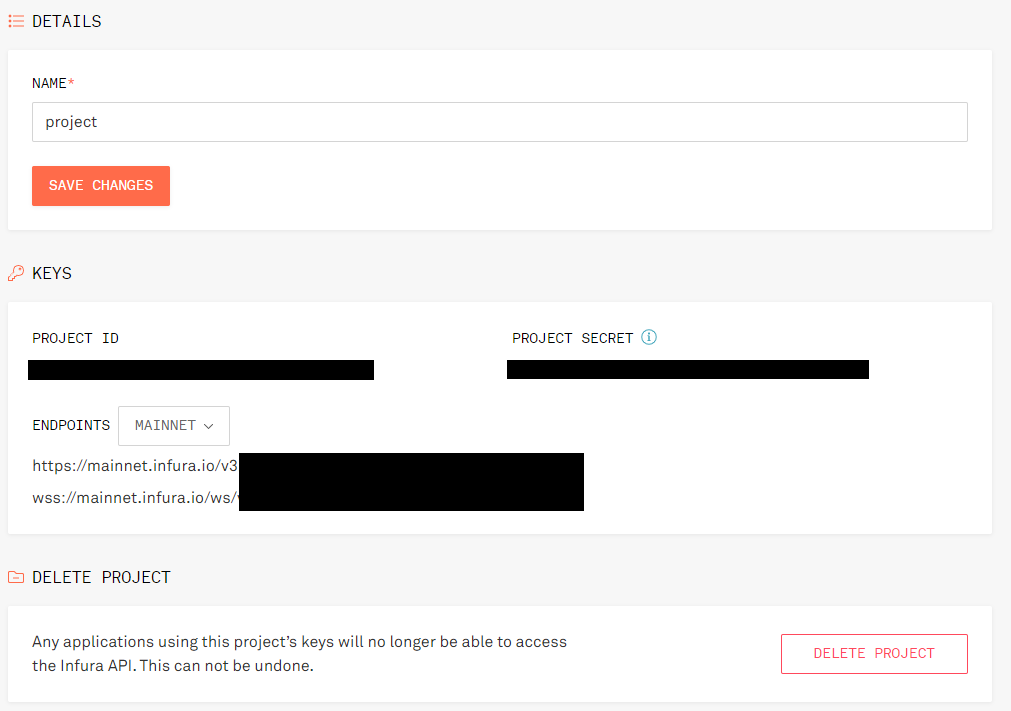 infura κ³μ μ μμ±ν ν, μ νλ‘μ νΈλ₯Ό λ§λ€λ©΄ Project ID λ₯Ό νμΈν μ μμ΅λλ€.