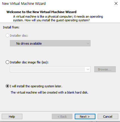 2-2-2) μνλ νλμ¨μ΄ μ±λ₯μΌλ‘ μ€μ νκ³ , Cusomize Hardware (λλ κ°μλ¨Έμ μ λ§λ λ€ Edit virtual machine settings) -> New CD/DVD -> Connection μ λ€μ΄λ°μ Ubuntu iso νμΌλ‘ μ€μ ν©λλ€.