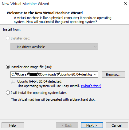 2-1) Installer disc image file (iso) λ‘ λ€μ΄λ°μ Ubuntu iso νμΌ κ²½λ‘λ₯Ό μ§μ