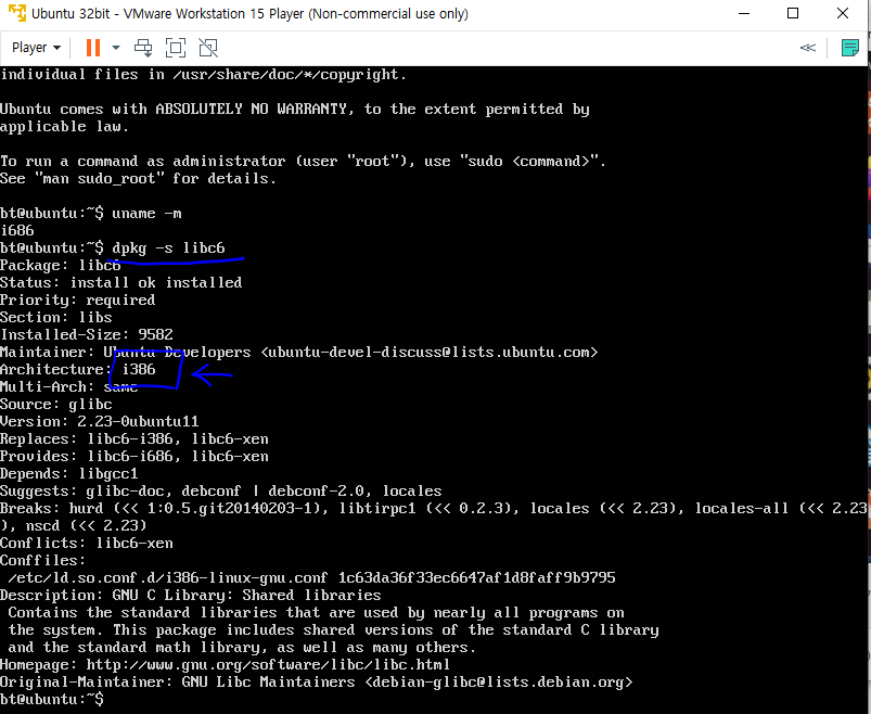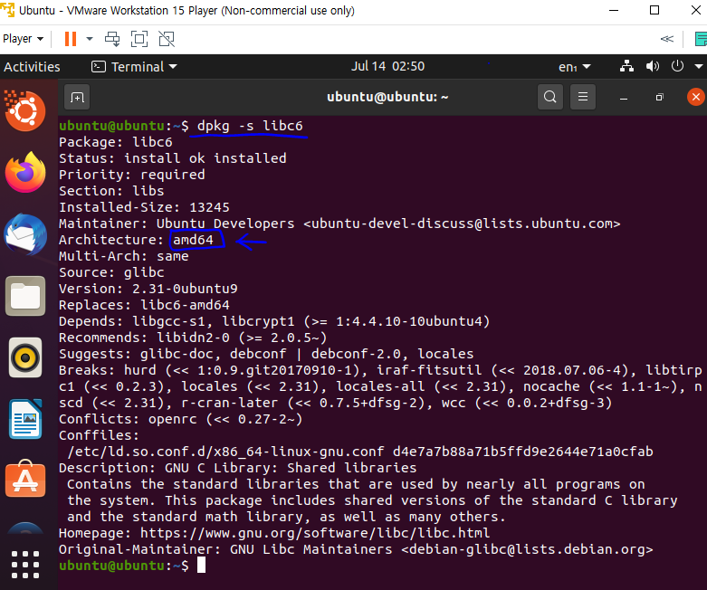 64 bit β‘ ν°λ―Έλ μ°½μ dpkg -s libc6 μ λ ₯