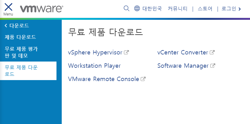 2) λ©λ΄ -> λ€μ΄λ‘λ -> λ¬΄λ£ μ ν λ€μ΄λ‘λ -> Workstation Player